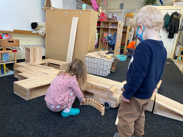 Margaret and Liam built a house for their people using the giant, wooden blocks.