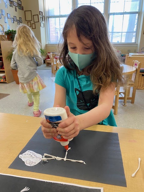 We used a couple of references when creating our skeletons. One was a book with a picture of a real skeleton, and the other was a printed picture of someone else's Q-Tip project.