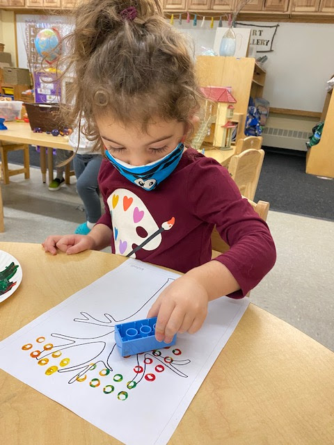 Cora, worked on identifying and tracing shapes. It's not easy to stay on the lines. This is great practice for when we doing our first names.